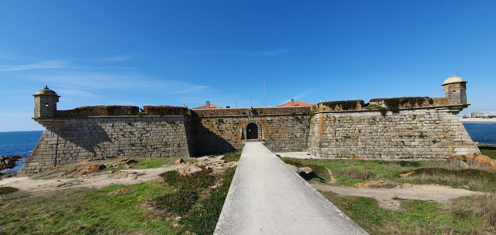 Muy cerca de allí, podemos ver la «Fortaleza de São João Baptista da Foz do Douro».