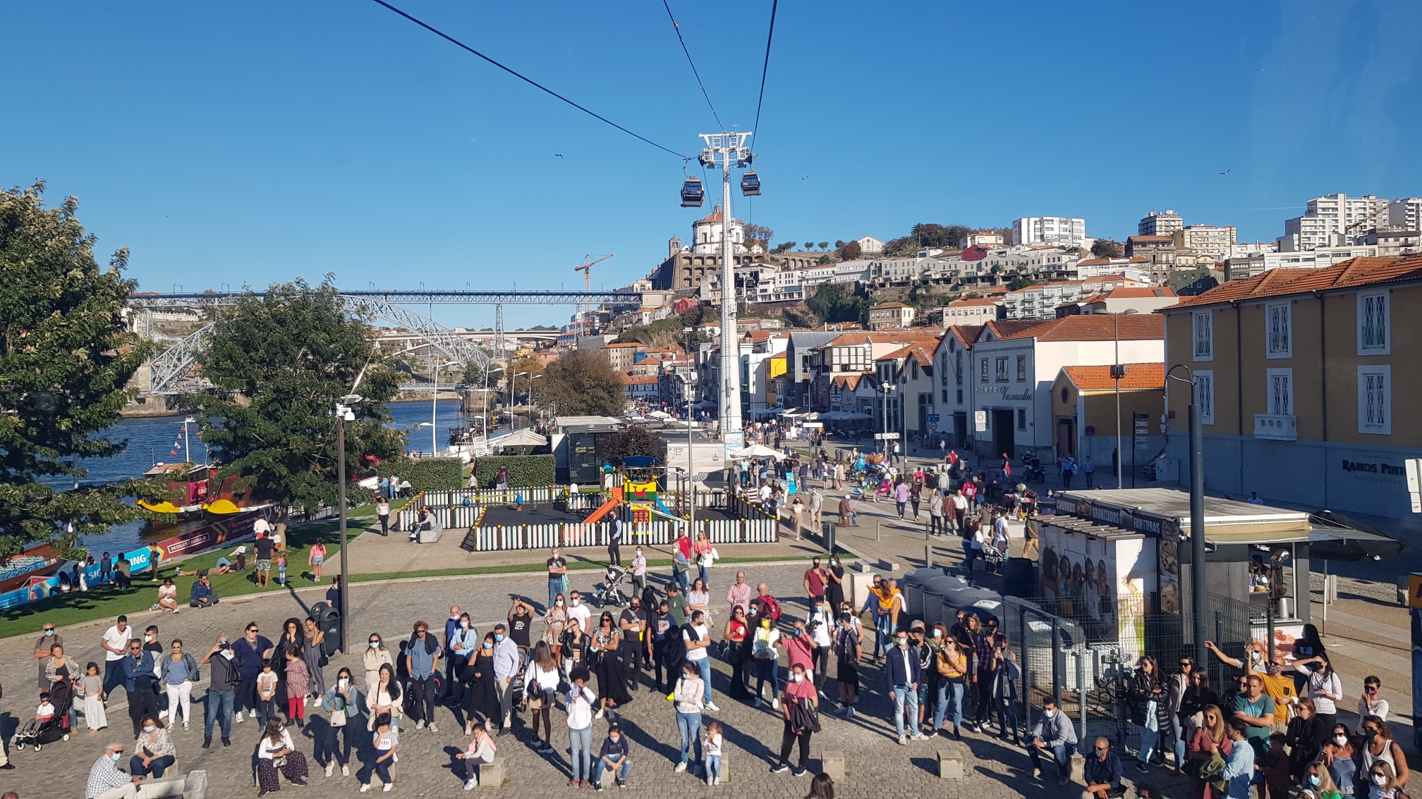 En su punto más alto, el más cercano al Puente Don Luis I, junto al Jardim do Morro, el teleférico alcanza los 63 metros.