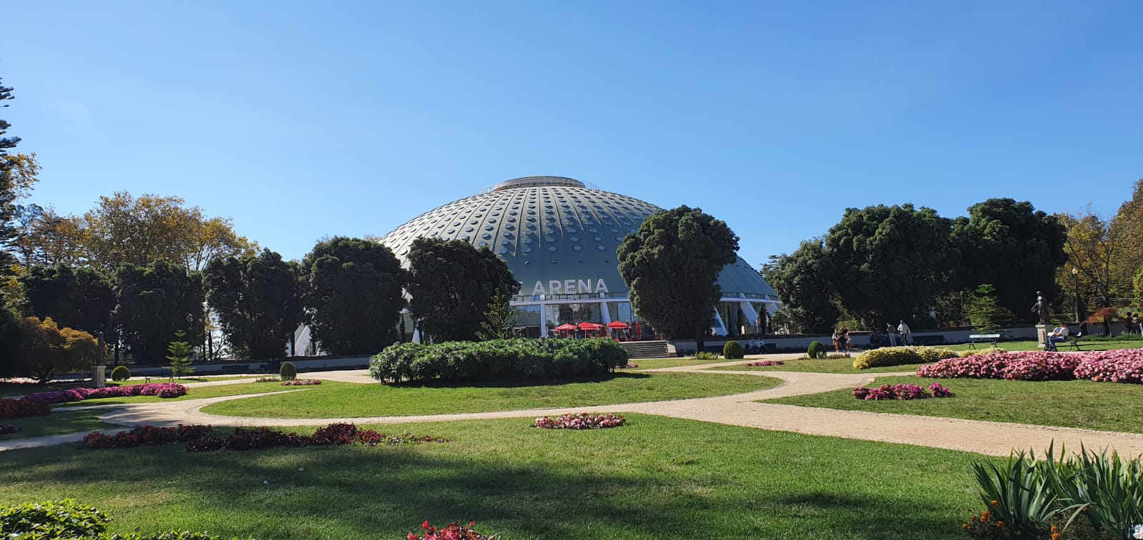 Esa cúpula que veis ahí es el «Pabellón Rosa Mota» que cuenta con restaurante y tiene capacidad para 5.000 espectadores por lo que a menudo acoge competiciones deportivas y también es conocido como «Pavilhão dos Desportos».