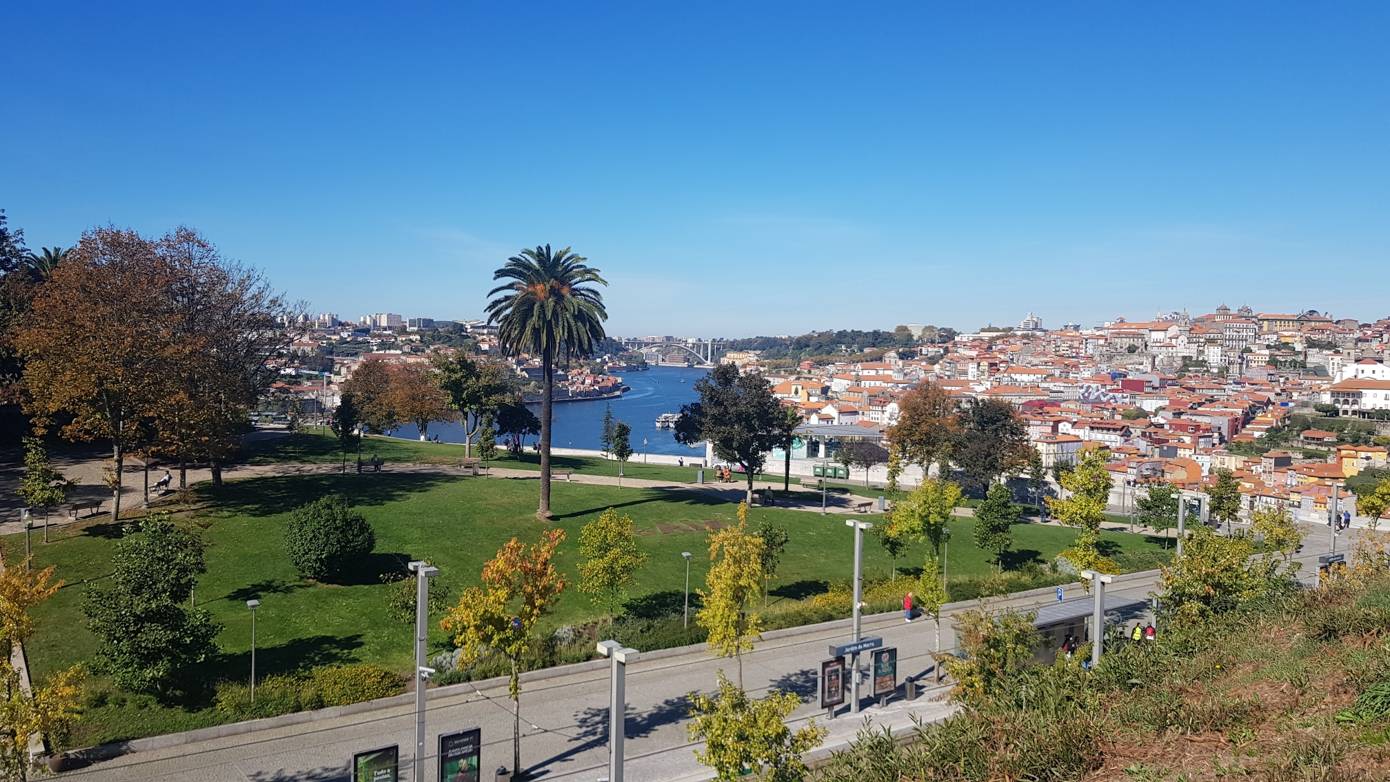Justo debajo, tenéis una zona estupenda para ver el ocaso, es más, cuando volvíamos del crucero de los seis puentes desde el mar veíamos a una gran cantidad de personas esperando que el sol desapareciera en el horizonte. Es el «Jardim Do Morro».